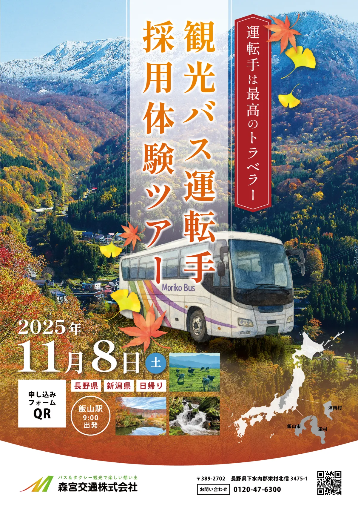 11月8日土曜日、新潟・長野県境に位置する森宮交通株式会社が主催する特別なバスツアーが開催されます。この企画は、旅行や観光に興味がある方、またUIJターンを希望する方々に向けたものです。参加者は、美しい自然や観光名所を楽しみながら、森宮交通の魅力や働き方について知ることができます。