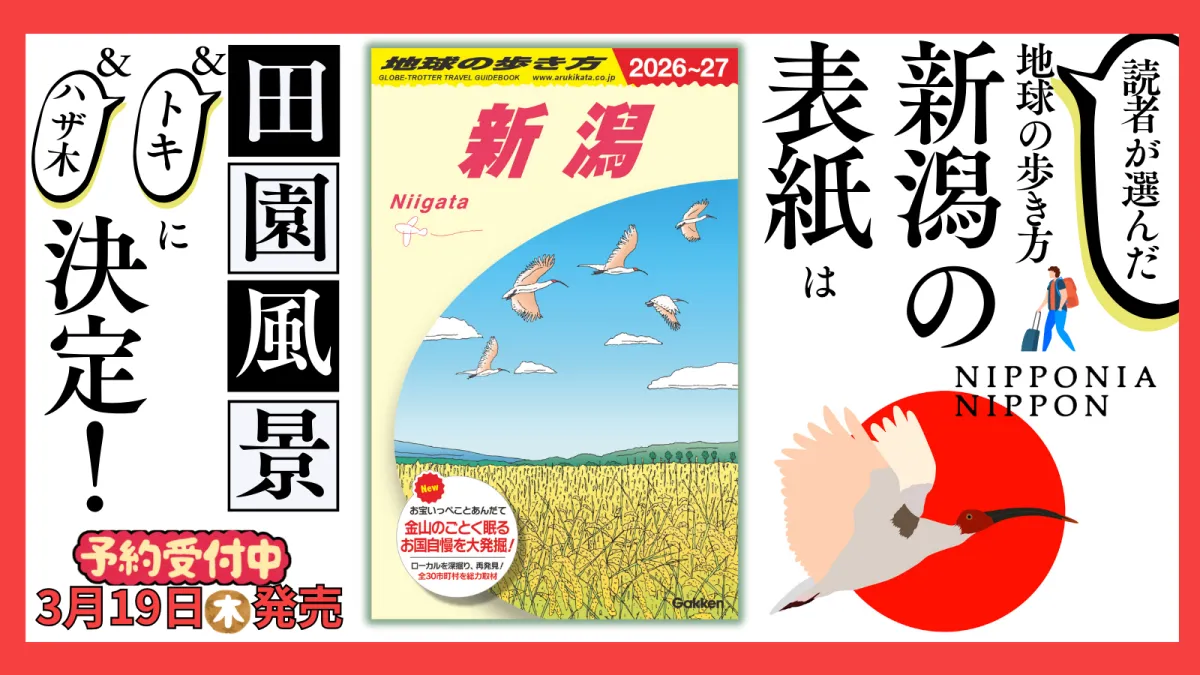 2026年3月19日に発売される『地球の歩き方 新潟』の表紙デザインが、2026年1月23日に発表されました。このガイドブックは、新潟の田園風景を象徴とするイラストが描かれ、多数の投票から選ばれた結果となっています。表紙には新潟自慢の「トキ」や「ハザ木」が含まれ、懐かしさと誇りを感じるデザインです。
