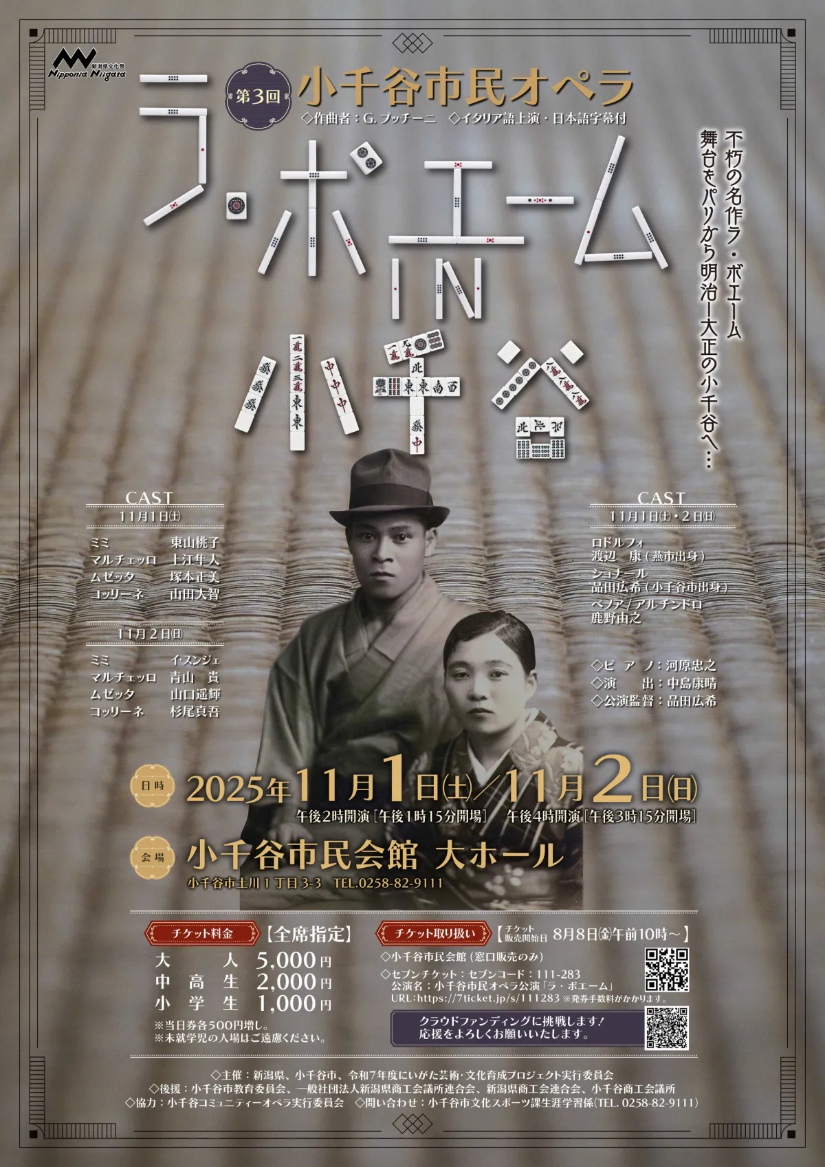 小千谷市民オペラ『ラ・ボエーム』は、地域の芸術と文化を直に感じられる貴重な機会です。市民が自ら参加し、地域の歴史を知り アートを楽しむ素晴らしいイベントに、皆さんもぜひ足を運んでみてください。この特別な体験をお見逃しなく!
