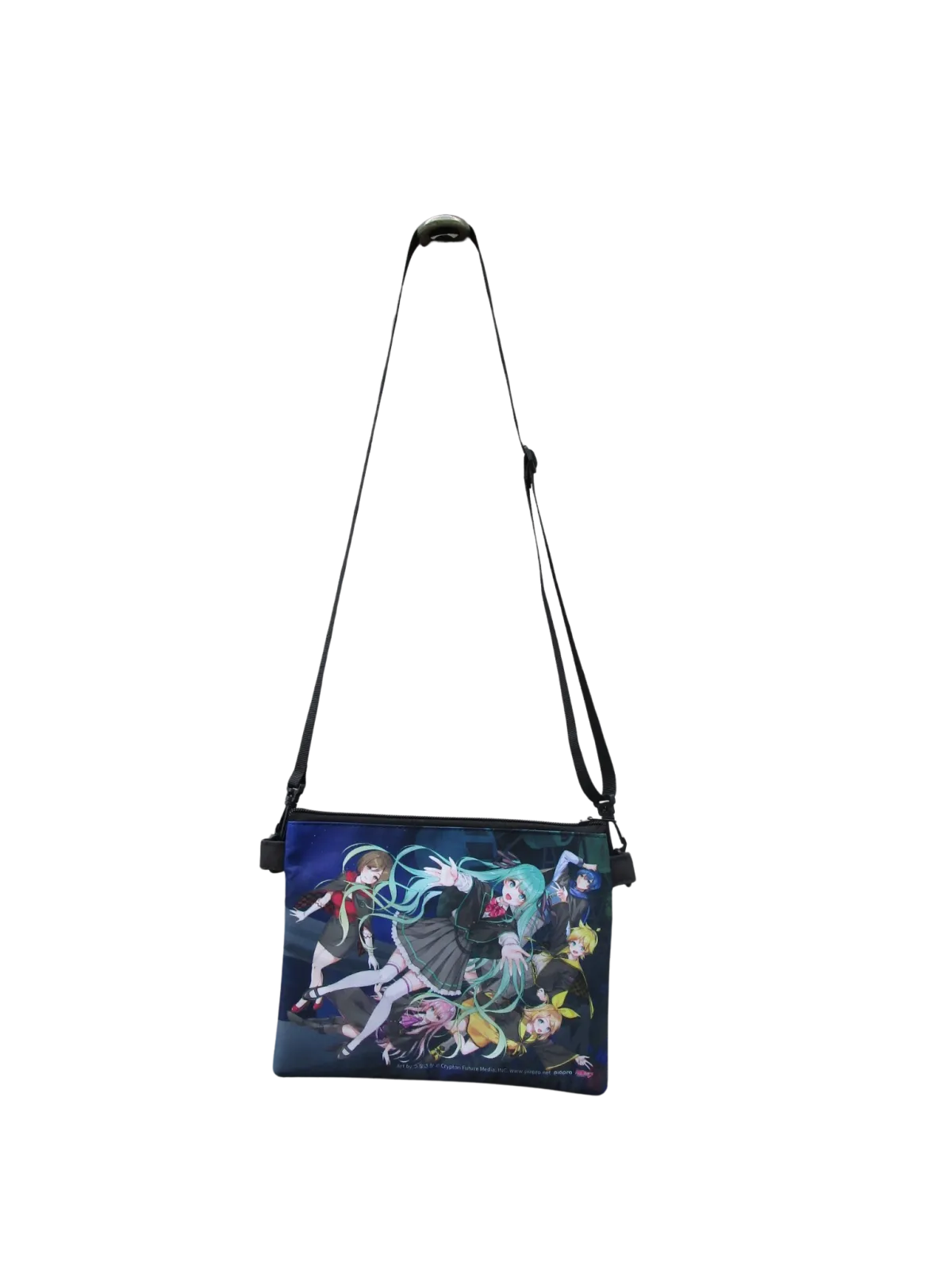 初音ミク×TOKI AIR サコッシュ。3,000円(税込)のこちらは、軽やかでちょっとした外出に最適なアイテムです。透明ポケットがあり、小物を入れて自分流のカスタマイズが楽しめます。サイズ感も持ちやすく、調節可能なショルダーストラップがついていて、忙しい日常の中でも使いやすい工夫がされています。